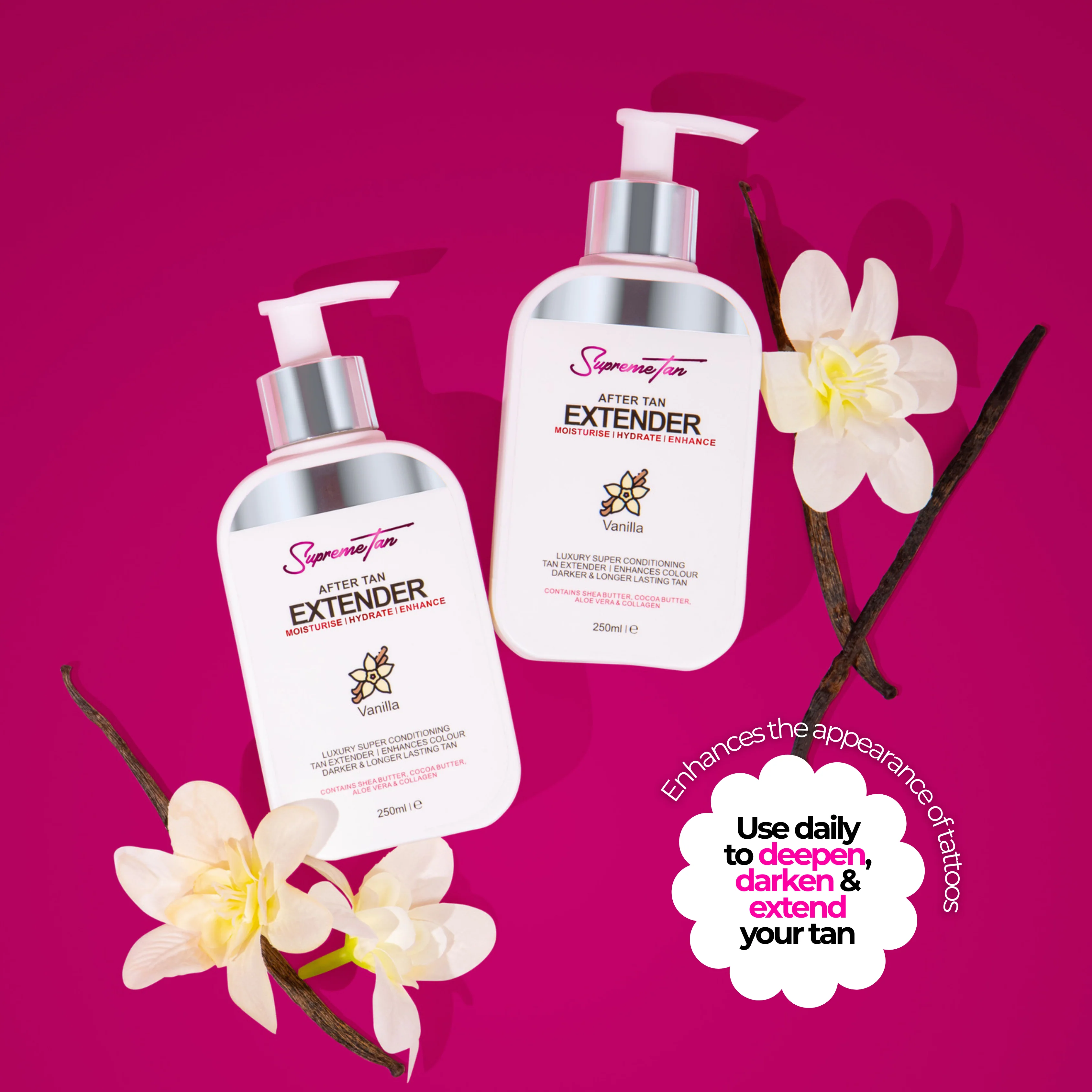 This ultra-hydrating formula is designed to prolong the life of your tan. Packed with Shea & Cocoa Butter, Carrot Oil, Aloe Vera, Tyrosine, Collagen and Vitamin E, it keeps skin soft, smooth, and deeply moisturised. Finished with a creamy vanilla scent.
